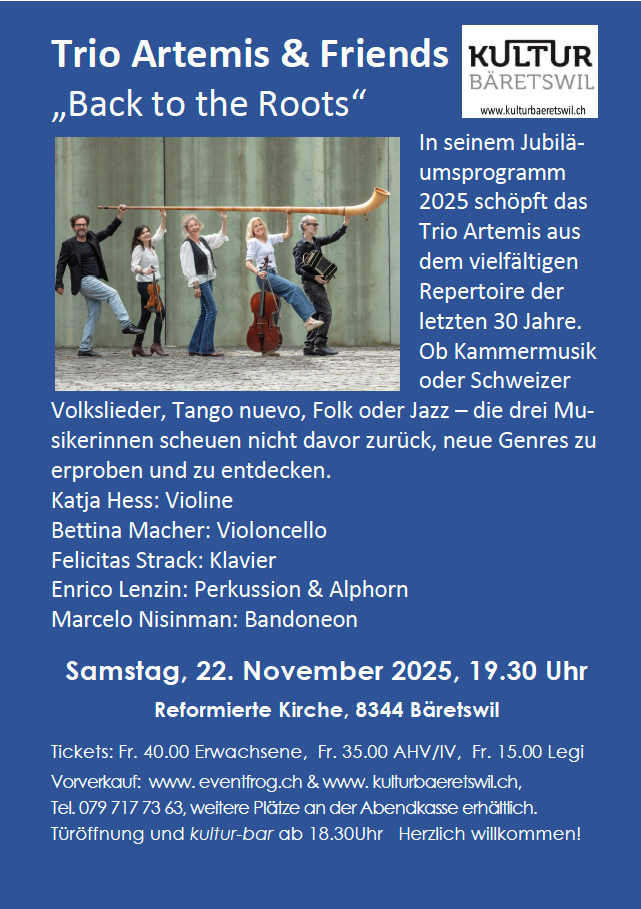 Tickets können unter www.kulturbaeretswil.ch oder www.eventfrog.ch bestellt werden.